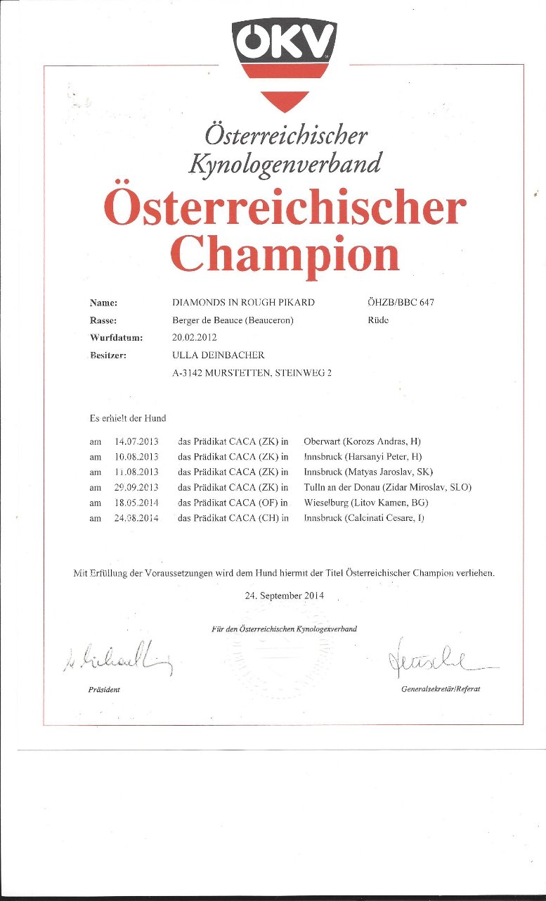 Pikard wurde der Titel "Österreichischer Champion" zuerkannt!